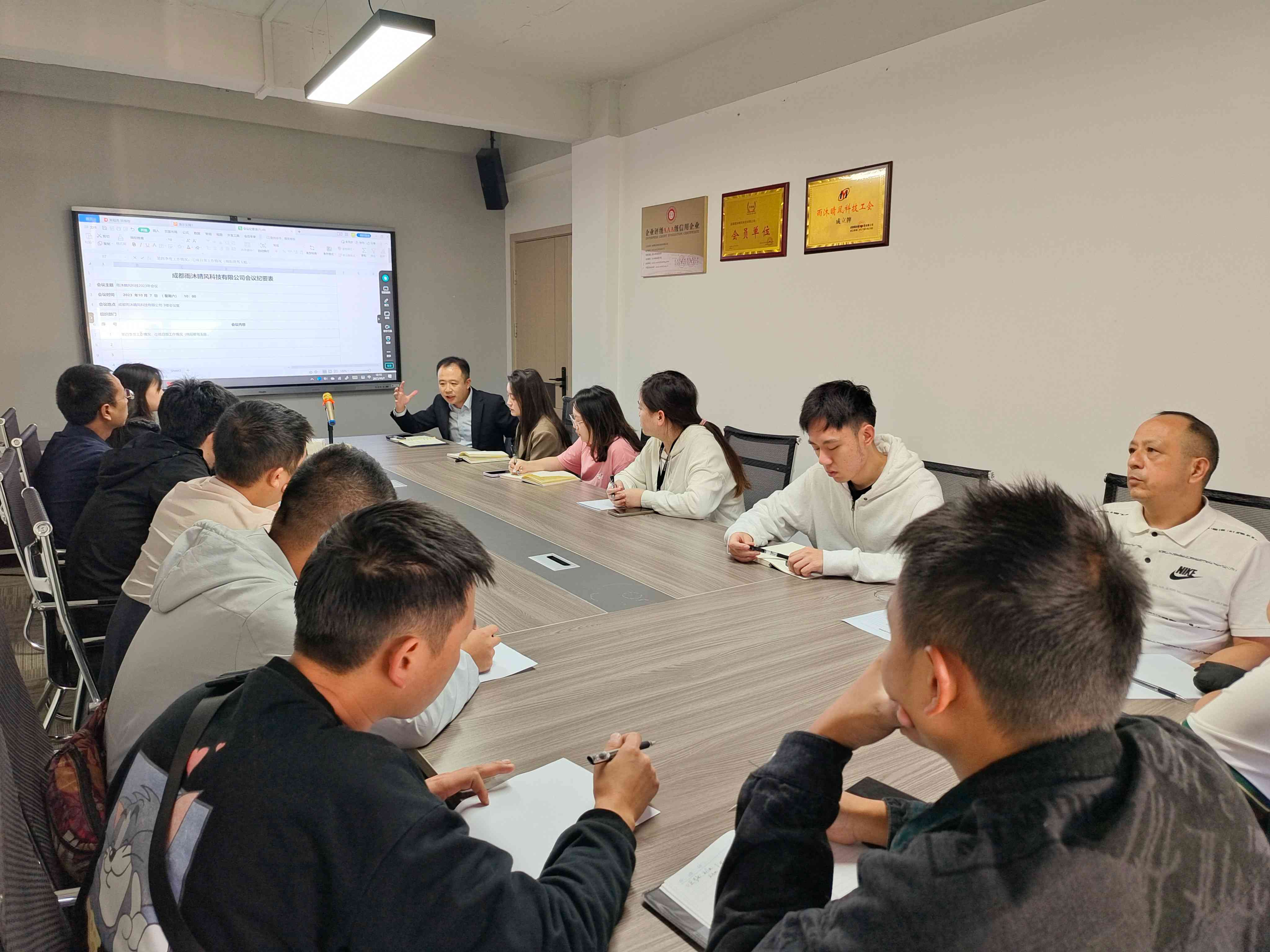 新春將至,雨沐晴風科技 2025 年終總結會順利召開。全體員工齊聚一堂,回顧年度發展成果、復盤經營工作,明確 2026 年發展方向,為新一年發展凝心聚力。 會上,首先開展年度經營數據復盤工作,財務部劉總對公司全年營收、成本、利潤等關鍵經營指標作詳細匯報,以數據為公司戰略規劃提供堅實支撐。 各部門依次作年度工作總結,副總李祝軍、項目經理唐維及項目部、業務部、行政部等各部門同事,分別分享了 2025 年工作成果、經驗心得,并明確了 2026 年工作規劃,各部門的深耕細作與通力協作,盡顯公司團隊的凝聚力與戰斗力。 李總在會上發表年度總結講話,解讀公司 2025 年整體經營情況,深入分析市場機遇與挑戰,為公司 2026 年發展擘畫清晰藍圖,為全體員工注入奮進動力。會議還設置了新春紅包派送環節,李總為大家送上新年祝福,現場洋溢著溫馨的節日氛圍。 此次年終總結會,既是對 2025 年工作的全面復盤,更是對 2026 年工作的動員部署。新的一年,雨沐晴風科技全體員工將以此次會議為起點,凝心聚力、開拓創新,以全新姿態迎接新挑戰、搶抓新機遇,攜手書寫公司發展新篇章。值此新春佳節來臨之際,公司也提前祝愿全體員工新春快樂、闔家幸福、萬事順意!